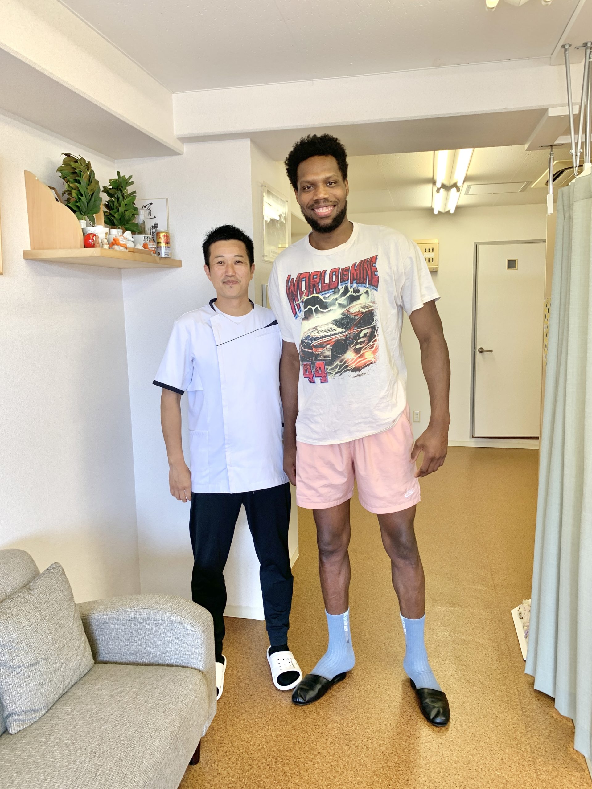 私の治療院に来院される患者様の中でも、1番身長の高い患者様‥(笑)